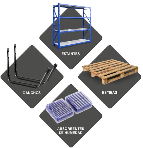 También contamos con personal de apoyo logístico y alquiler de estantería, colgantes y absorbentes de humedad para el aprovechamiento de almacenaje en altura y seguridad de sus elementos.